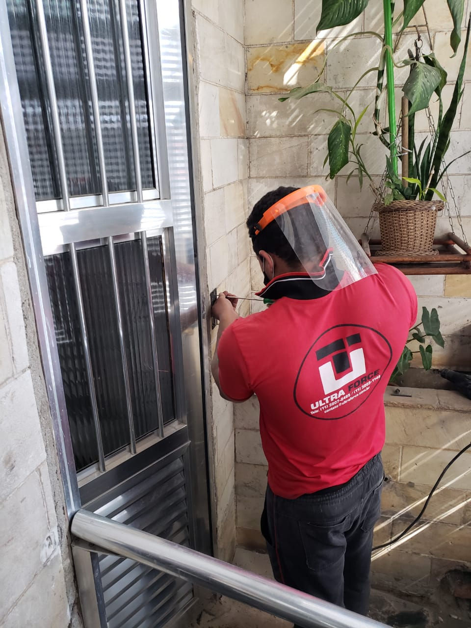 Devido ao fluxo intenso de moradores, com entradas e saídas, muitas vezes deixando o portão externo ou porta de entrada o tempo todo abertos, foi instalado uma fechadura com reconhecimento biométrico.